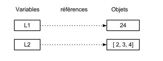Dans ce cas-là, là encore le mécanisme marche, Python détecte le changement et il crée un nouvel objet de valeur 24, qu'il rattache à la variable L1