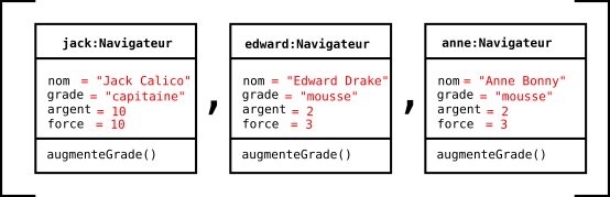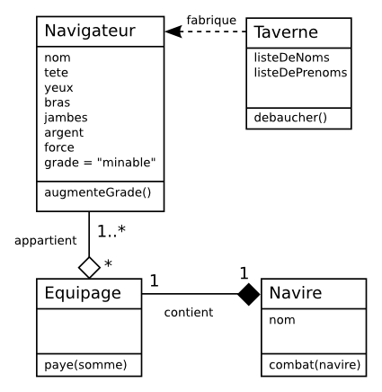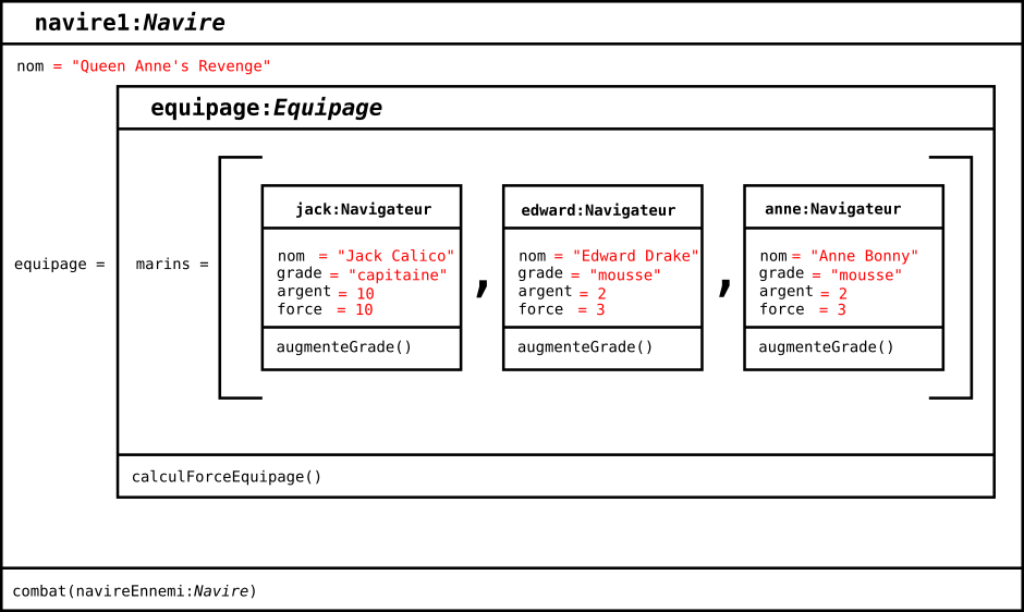 class Navire(object): def init(self, nom, marins): self.nom = nom self.equipage = Equipage(marins)
