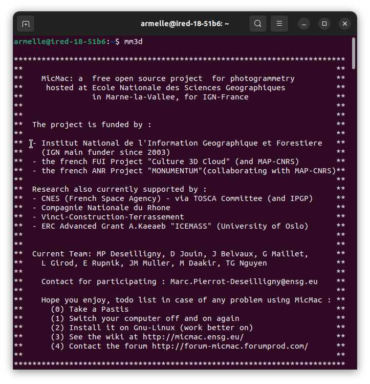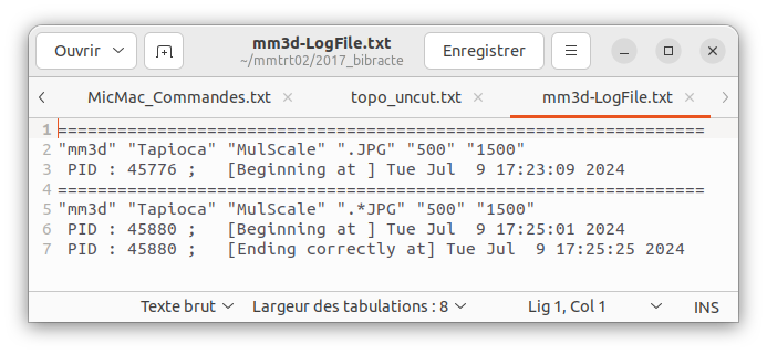 mm3d NomOutil -help Enregistrement de l’ensemble du processus : chaque ligne de commande est enregistrée au fur et à mesure du processus dans le fichier “mm3d-LogFile.txt”