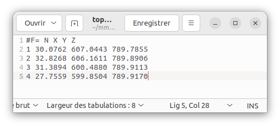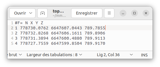 Pour palier à ce problème, un nouveau fichier .txt est créé en tronquant les coordonnées (topo.txt).